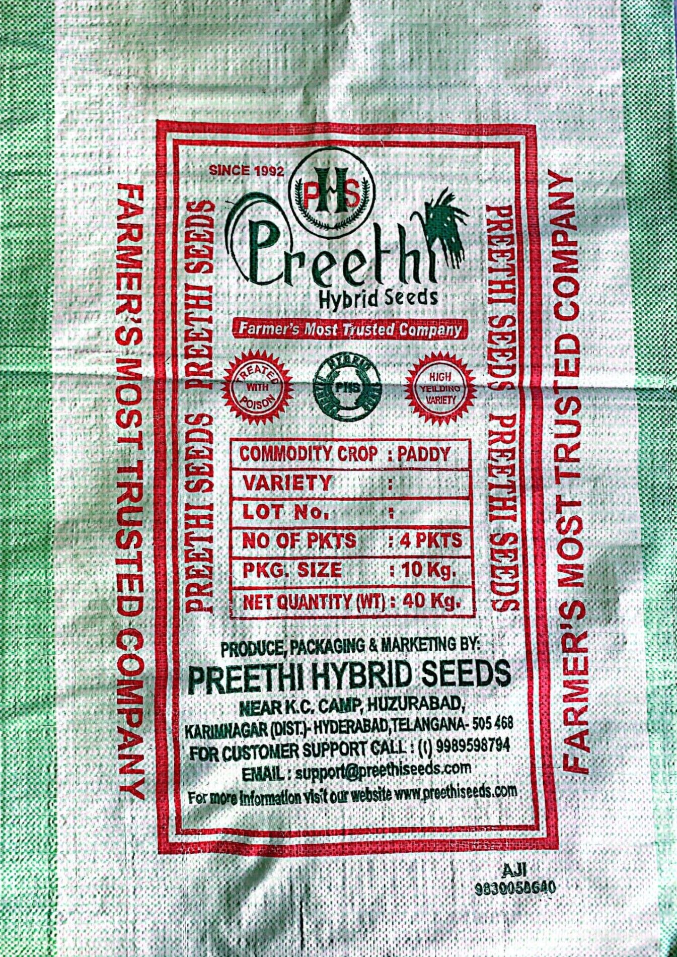 This is an outer plastic bag of 40Kg. When our customers request we pack four(4) of 10Kg plastic bags into one 40Kg outer plastic bag and supply the paddy seeds.